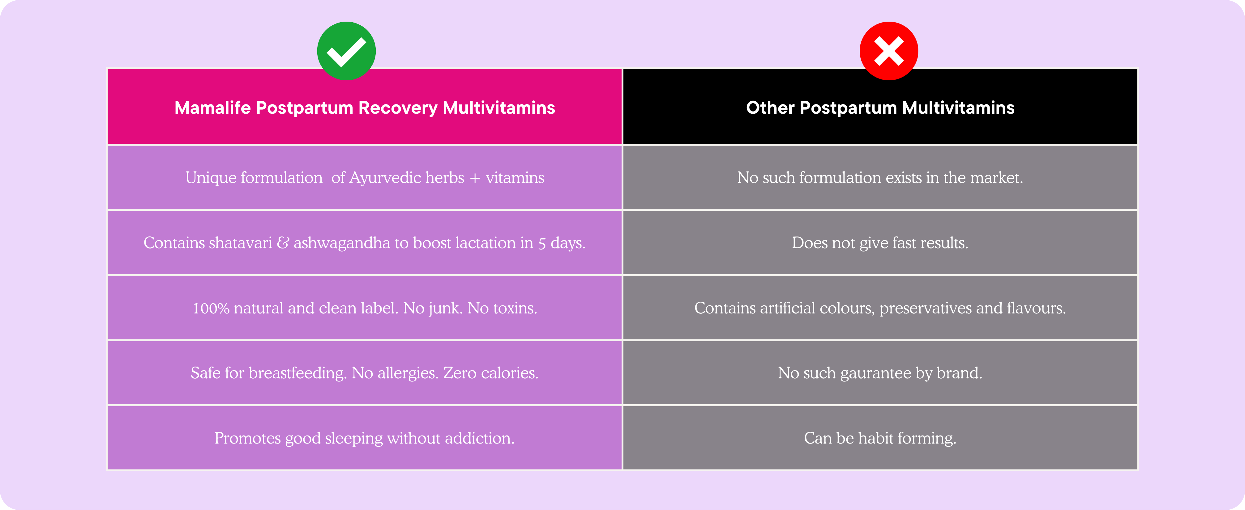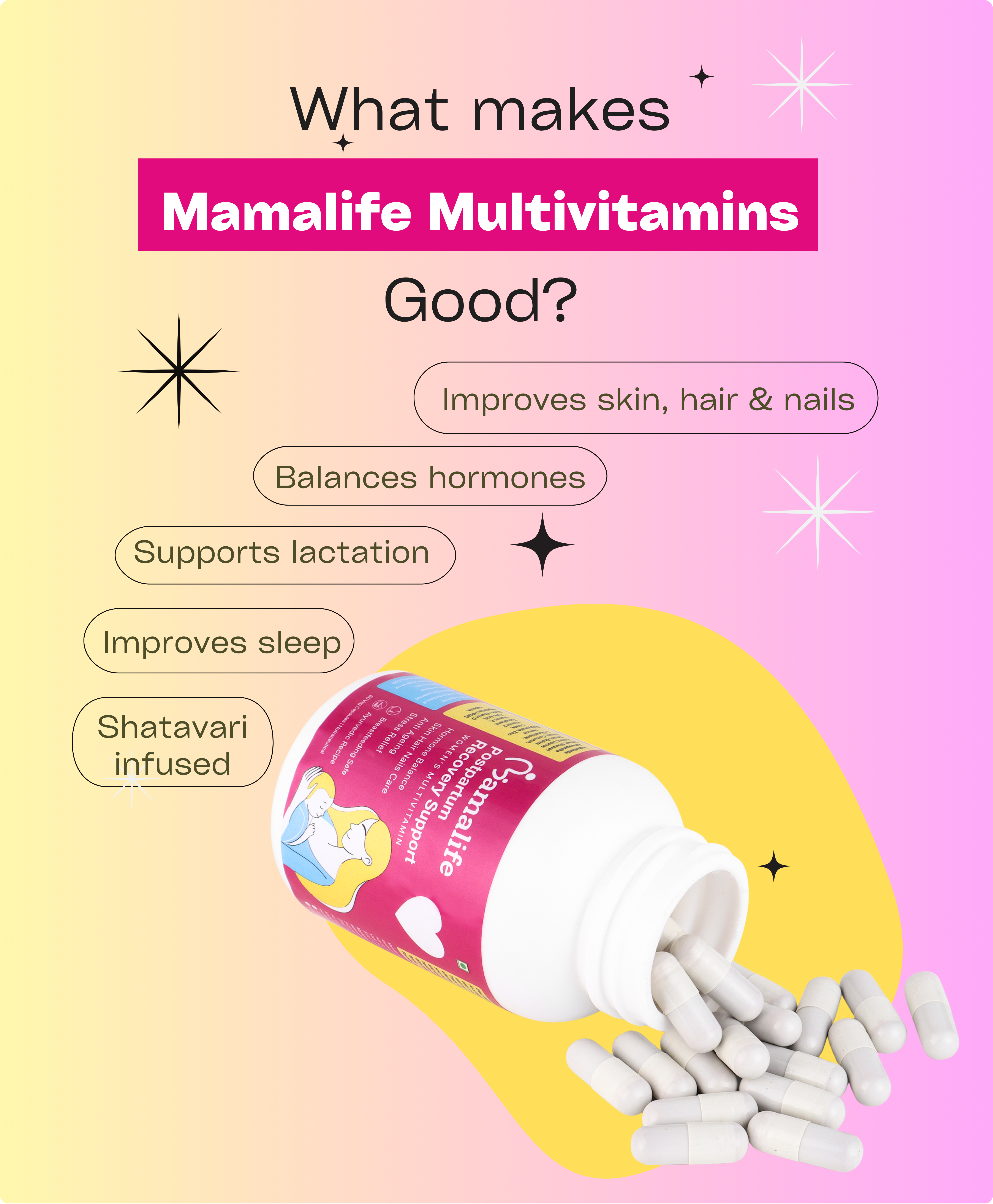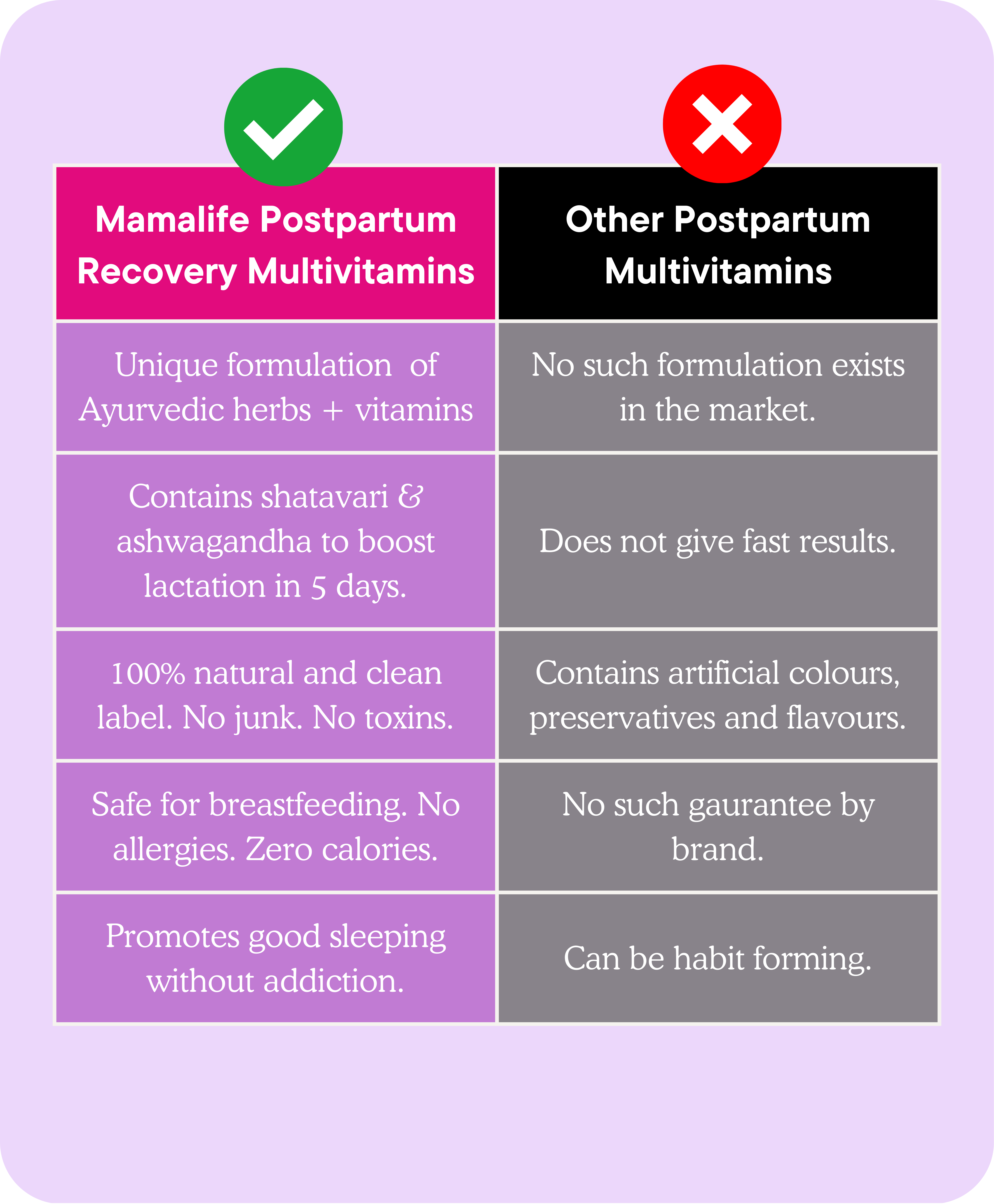 ✅ Ancient Ayurvedic galactagogues like Shatavari, Mulethi, Methi, and Ashwagandha — all in one easy-to-take capsule