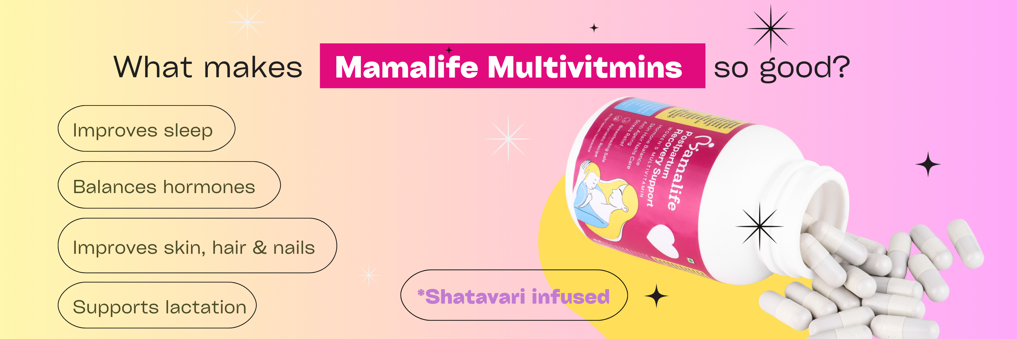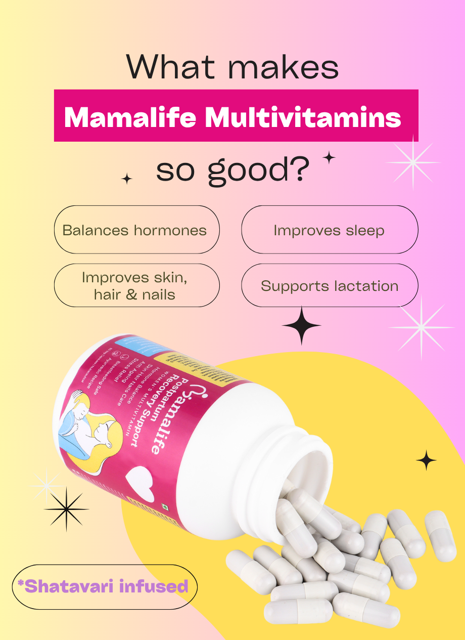 ✅ Ancient Ayurvedic galactagogues like Shatavari, Mulethi, Methi, and Ashwagandha — all in one easy-to-take capsule