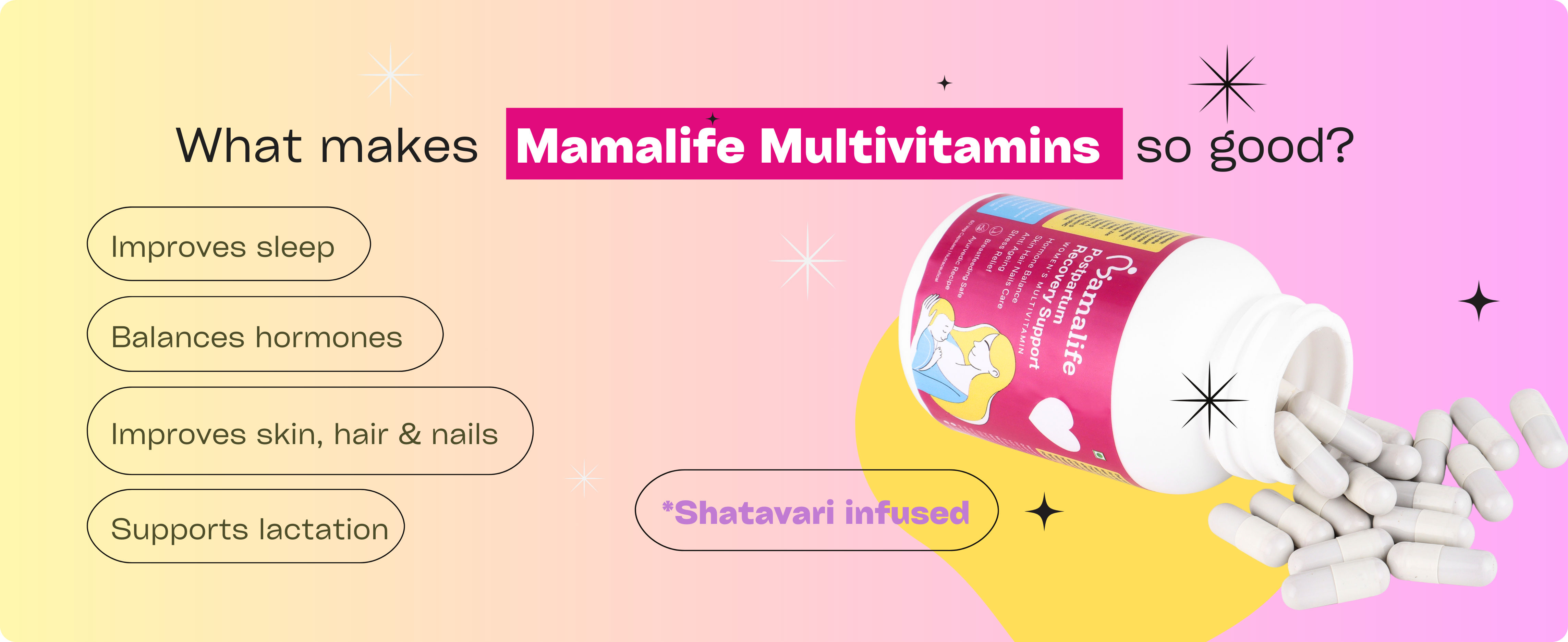 ✅ Ancient Ayurvedic galactagogues like Shatavari, Mulethi, Methi, and Ashwagandha — all in one easy-to-take capsule
